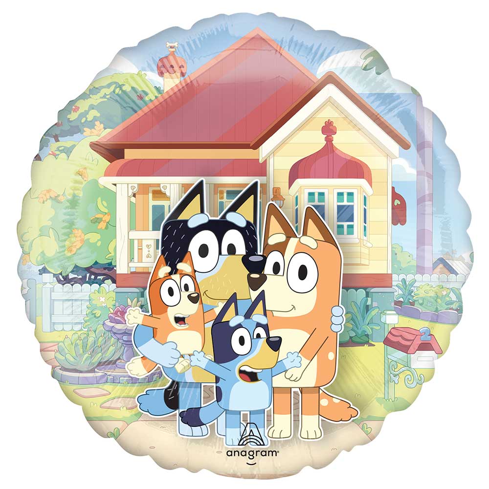 Bring your Bluey party to life with this 15 inch round Bluey foil mylar balloon! This Anagram balloon features Bluey, Bingo, Bandit, Chilli and is perfect for using in a Bluey themed balloon bouquet. Pair with some of our other Bluey foil mylar and latex balloons for a great design! This balloon includes a self-sealing valve, preventing the gas from escaping after it's inflated. The balloon can be inflated with helium to float or with a balloon air inflator. Balloon arrives uninflated.
