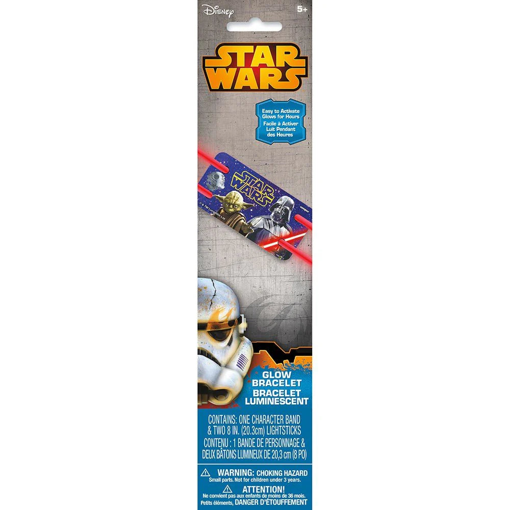 8" Star Wars Glow Bracelets are a great party favors to include in loot bags, favor bags or even just to wear for fun. Glow Sticks are easy to activate and glow for hours. Perfect for your next Star Wars party. Includes: One Character Bracelet and 2 - 8" Glow Sticks.